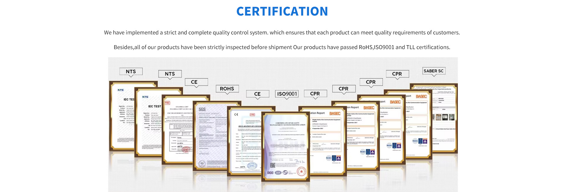 Since the establishment, we have been praised by our customers and partners because of our integrity operation and excellent quality products. Currently, GT-Optical has advanced production and test equipment for various kinds of fiber cable, including SZ stranded cable, central tube cable, all dielectric self-supporting ADSS cable, drop cable etc. GT-Optical's products are controlled strictly according to ISO 9000 quality management system and material comply with the request of directive of European Union and request of different laws and regulations.They have been exported to America,European, Middle East, Southeast Asia and the Pacific states .